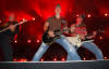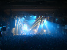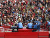 vběhli na pódium za mohutného aplausu desetitisícového davu.