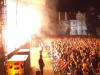 Vystoupení doprovázely světelné efekty a ohnivá šou. Na